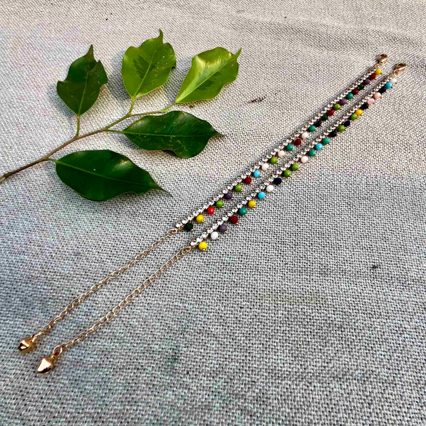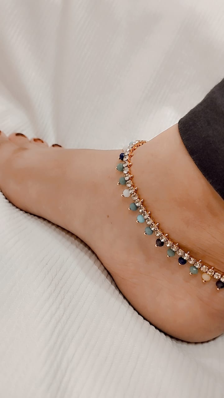 Multicolor Crystal Anklet Pair - Adjustable