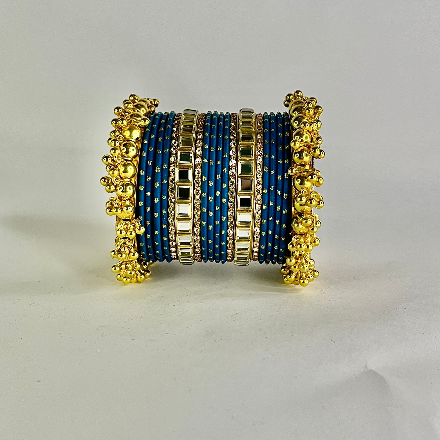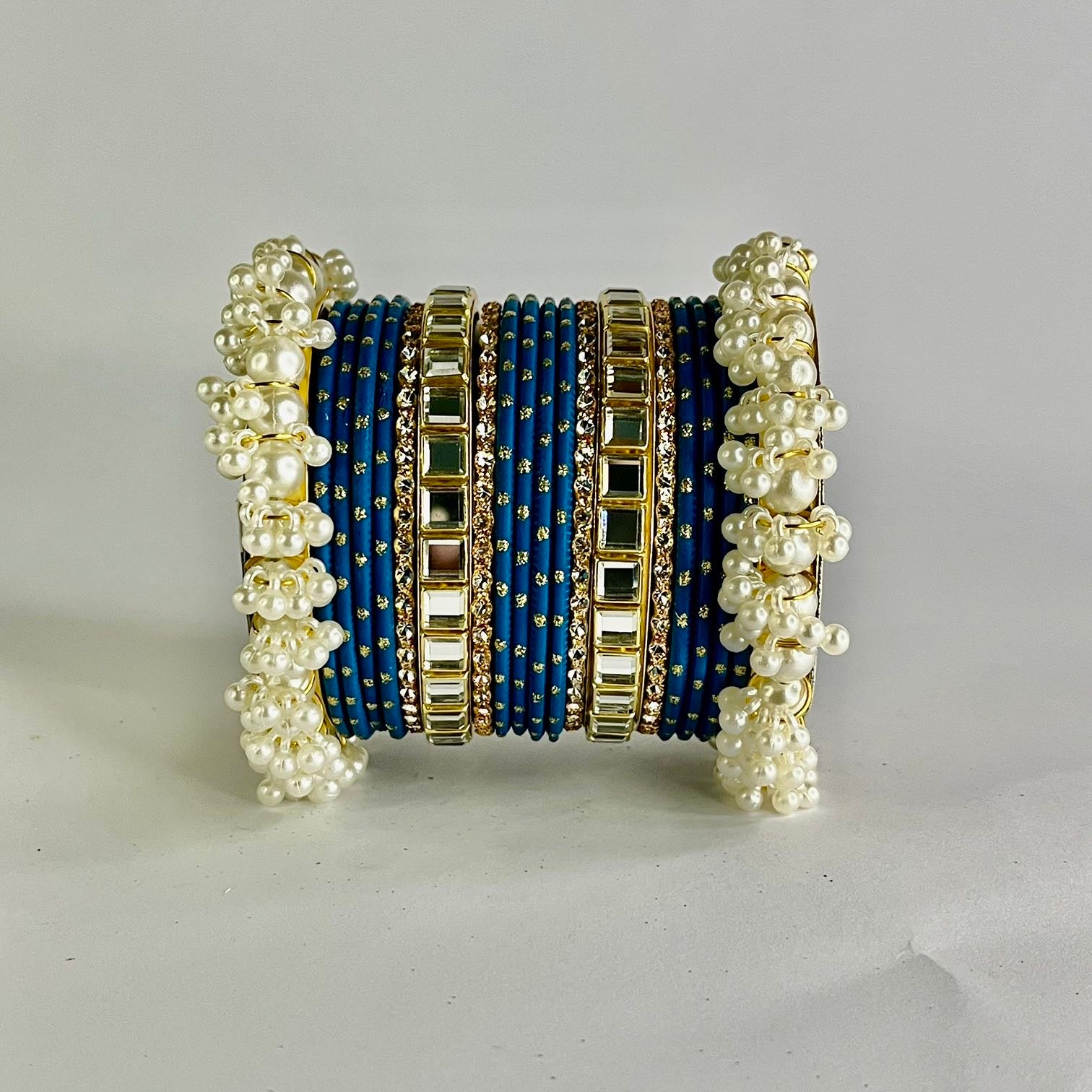 Navy blue Pearl & Kundan Bangle Set - 2.6 Size