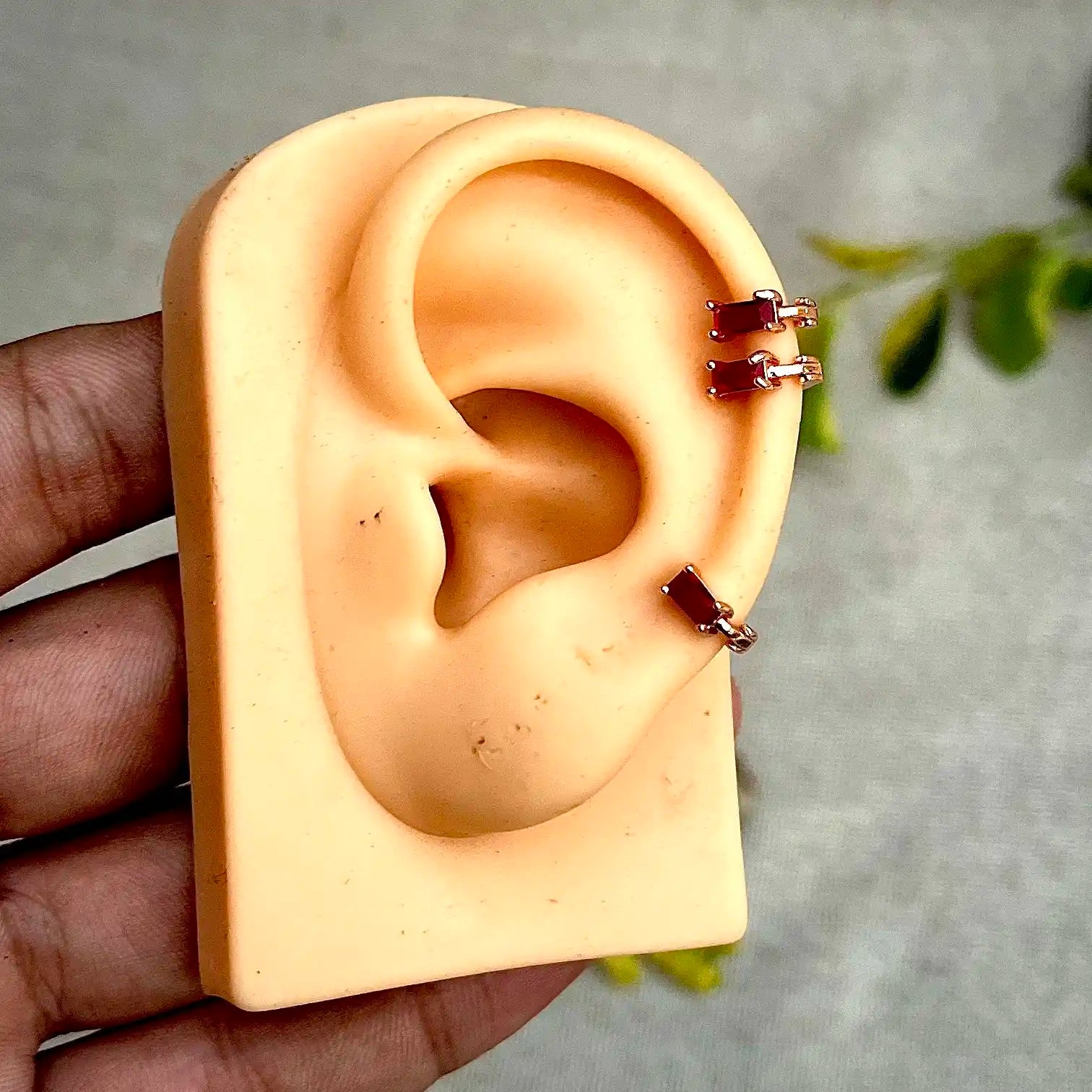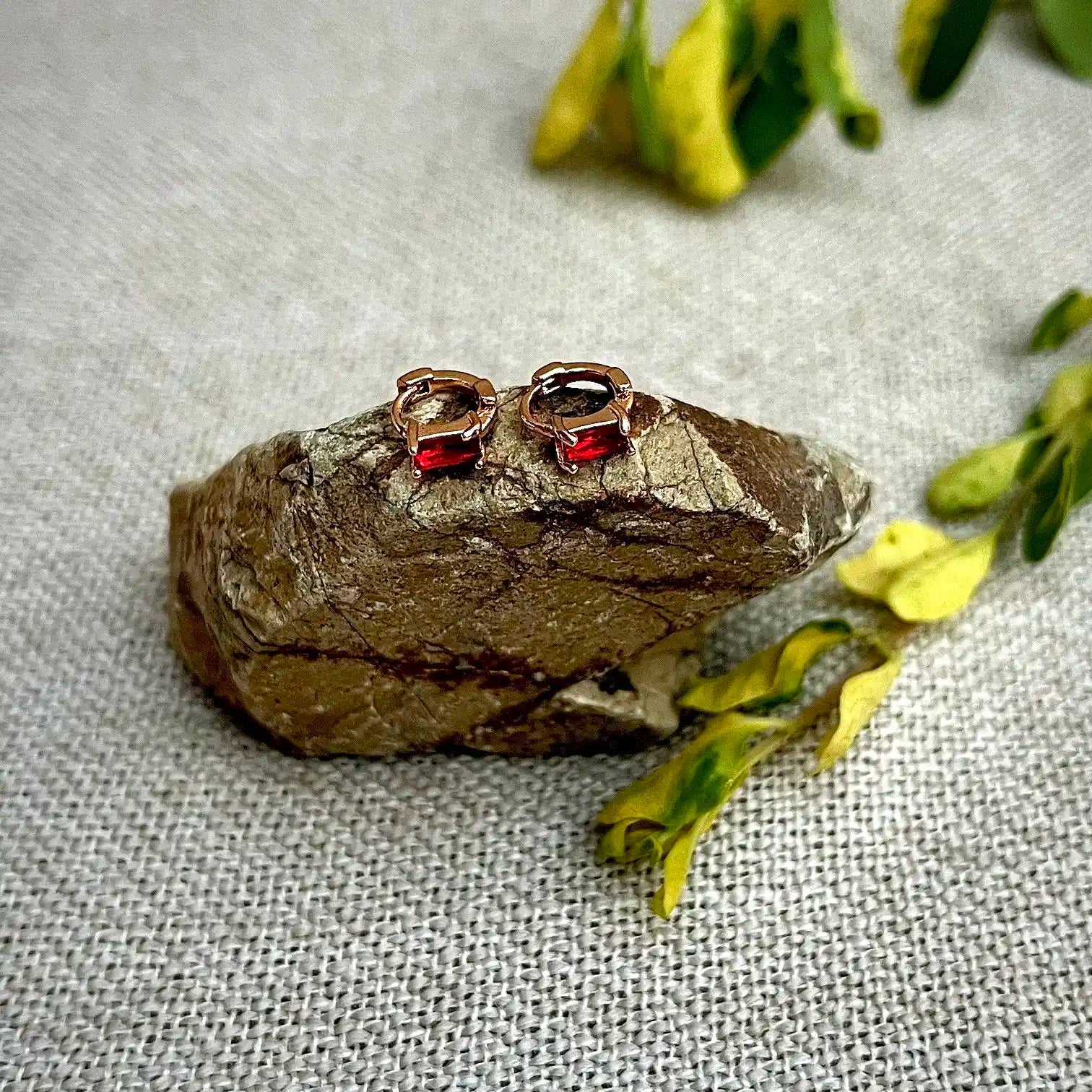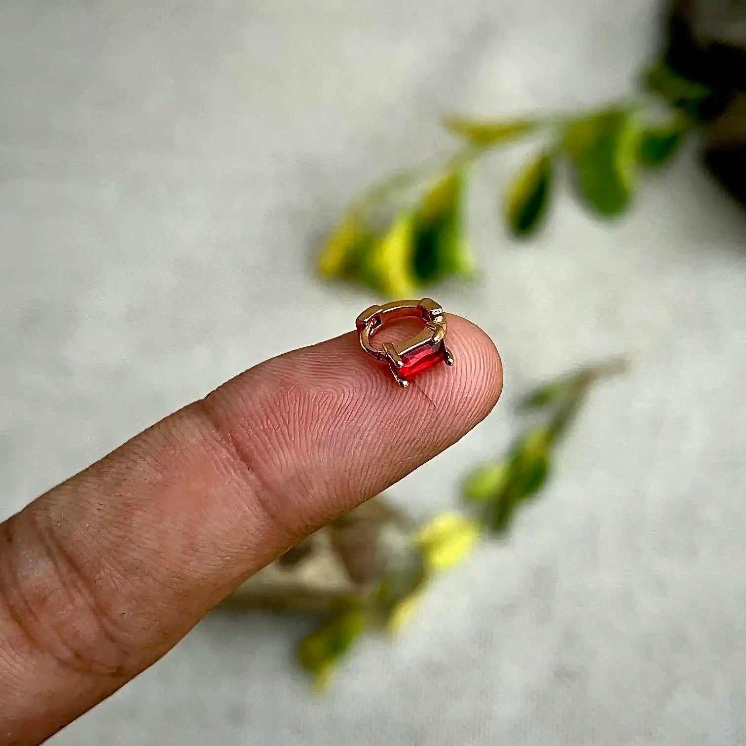 Shine bright every day with these 5mm red box-cut Zarqon stone hoop earrings. Specially designed for upper piercing, helix, cartilage, and tragus, these hoops bring a touch of elegance with a bold red stone bar look. Crafted with gold polished metal, they are waterproof, hypoallergenic, and long-lasting – making them the perfect daily wear earrings.