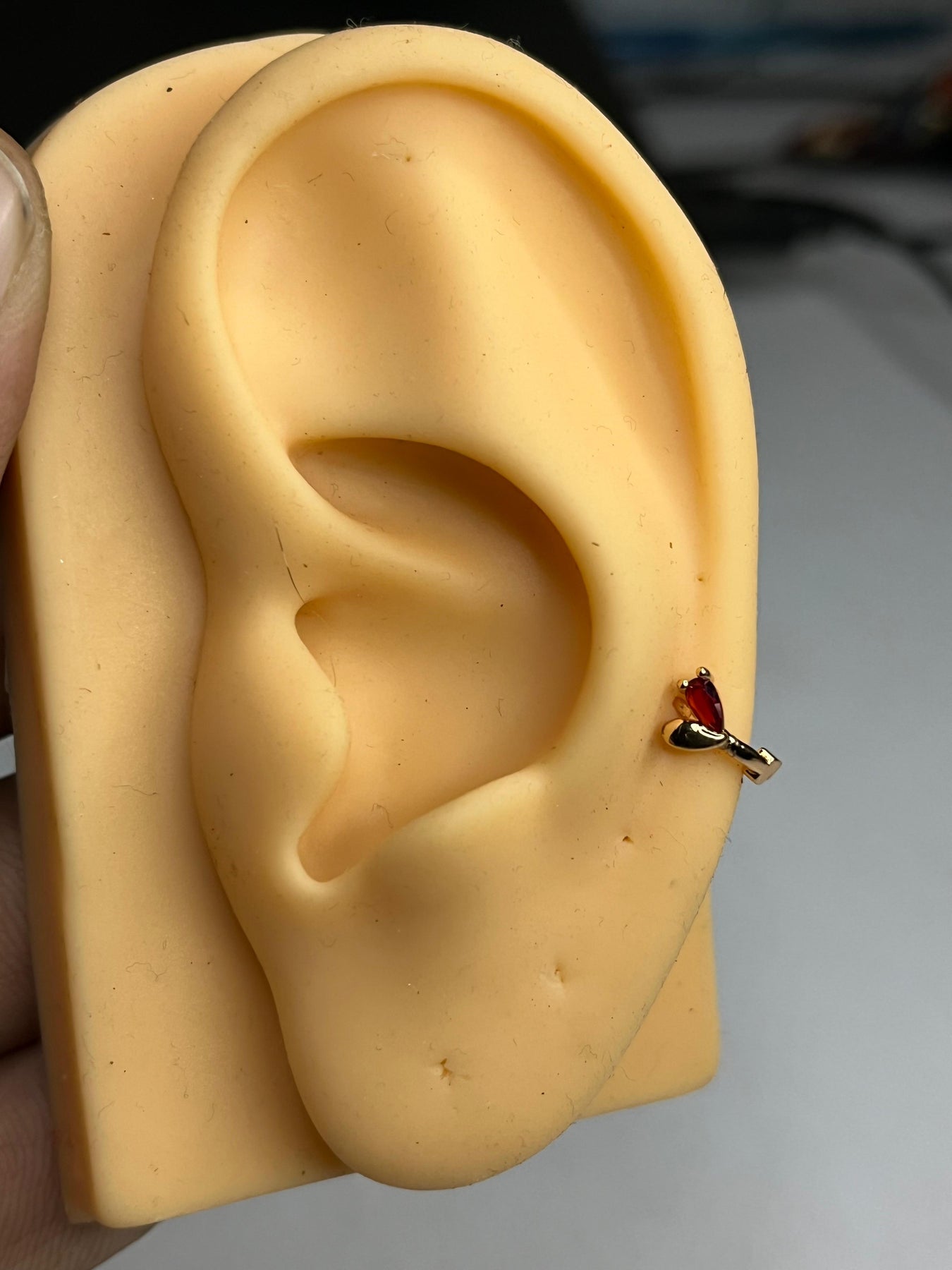 Upgrade your daily style with our 5mm Red Heart hoop earrings, the perfect choice for upper piercing, helix, cartilage, and tragus. These tiny gold polished hoops are crafted for everyday wear – lightweight, waterproof, and designed to keep their shine for years.