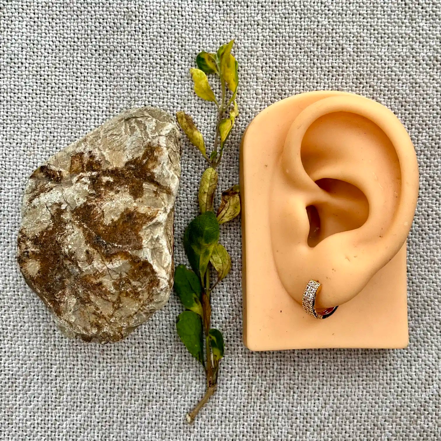 12mm Tiny Stones Hoop Earrings-Lobe Piercings