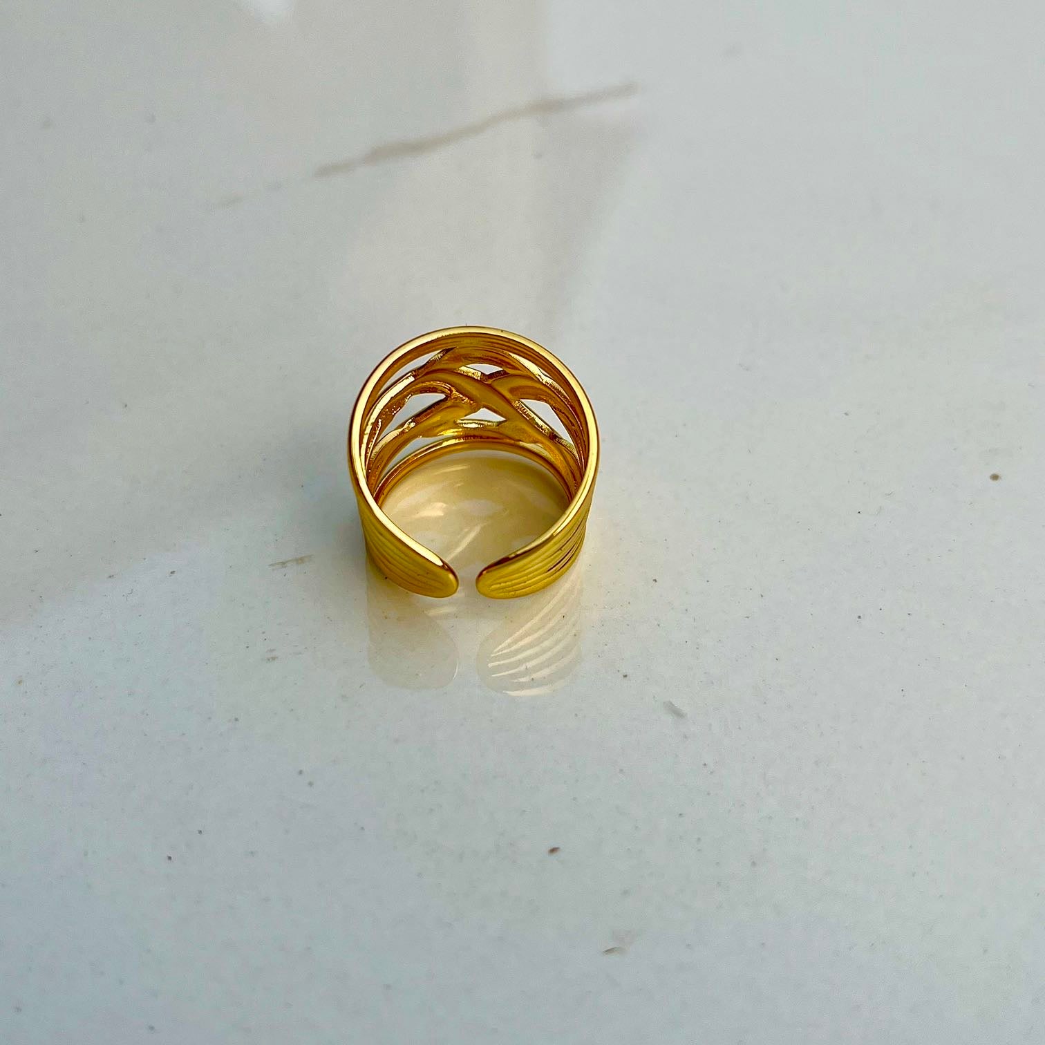 A simple, shiny, goldplated adjustable ring made for everyday wear. Premium polish, waterproof, and comfortable enough for all-day use. Its minimal design keeps it classy—perfect for college girls, office routines, casual looks, or gifting.