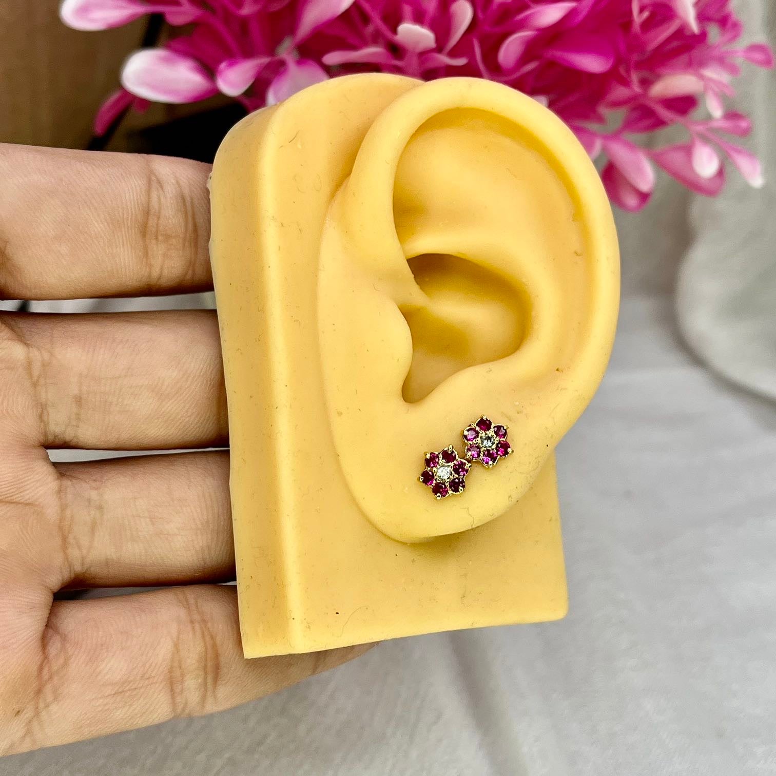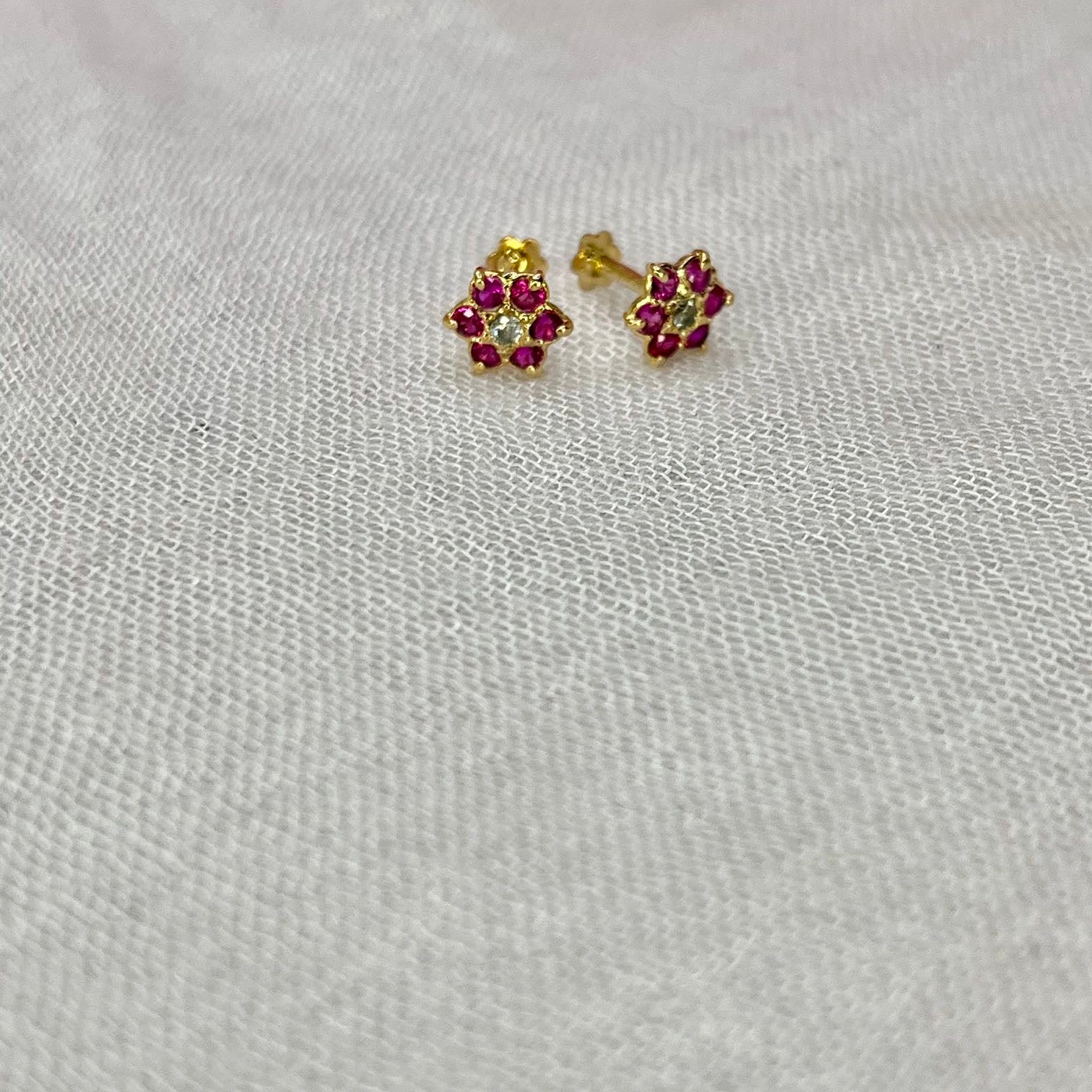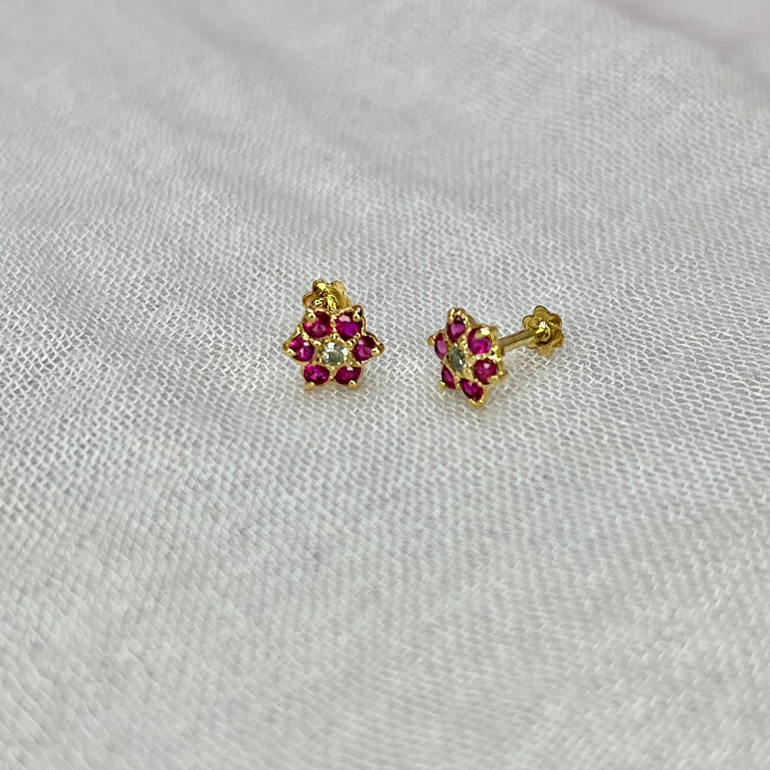 Pink 7 Stone Floral Screw Stud Earrings