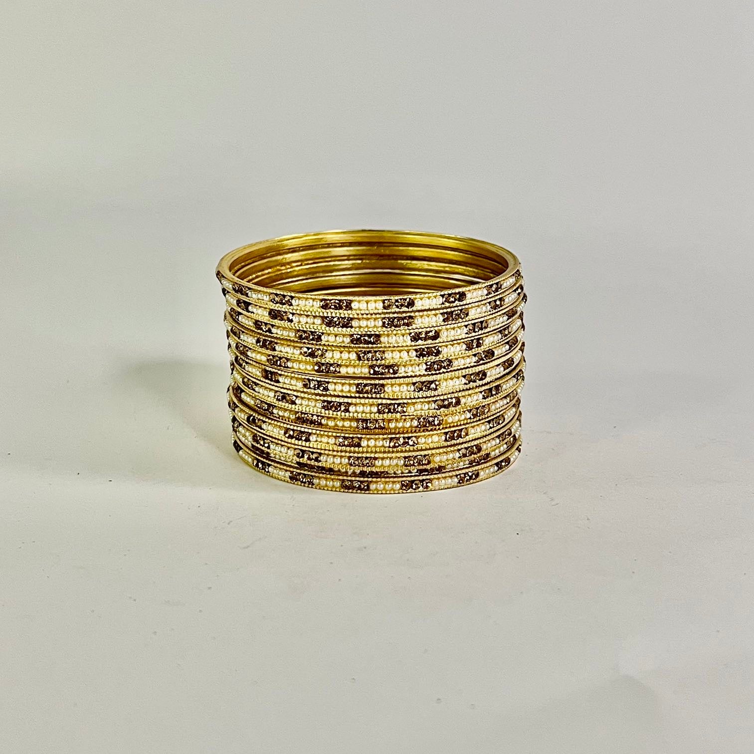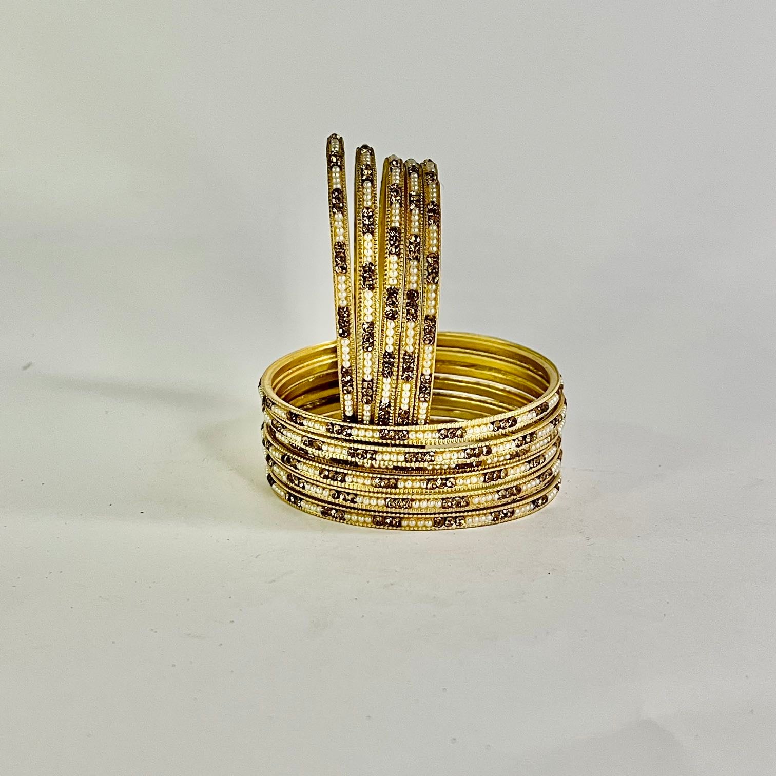 12 Pcs Daily Wear White & Golden Bangles Set for Girls - 2.6 Size