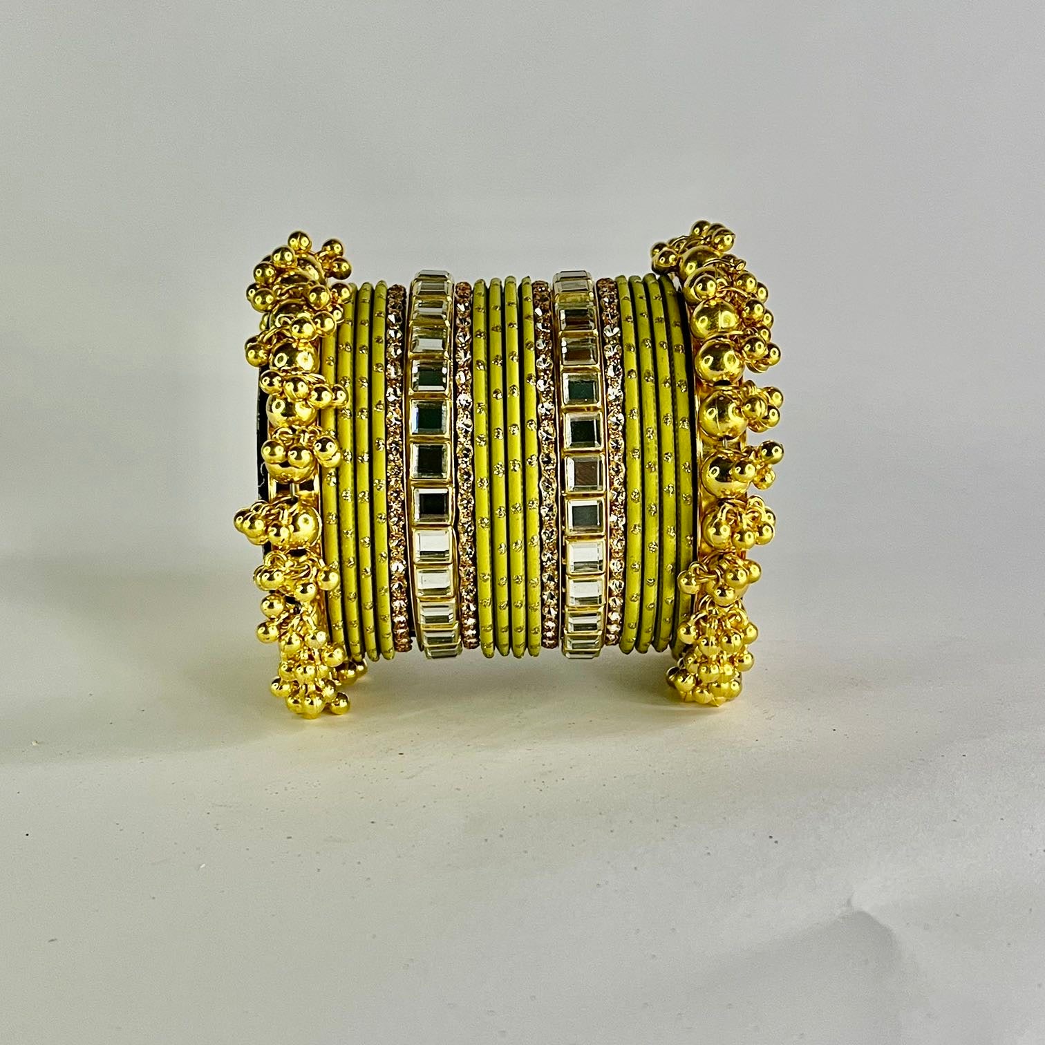 Champagne Pearl & Kundan Bangle Set - 2.6 Size