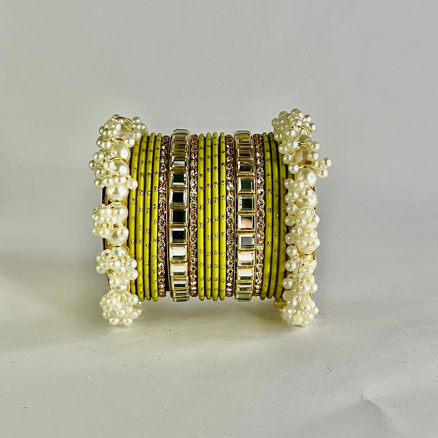 Green Pearl & Kundan Bangle Set - 2.6 Size